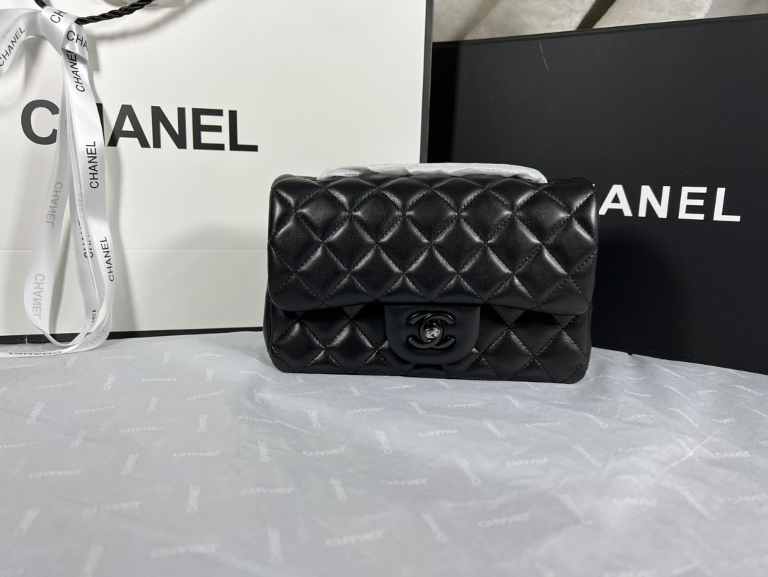 Ch*el mini classic handbag lambskin & silver-tone metal black 13.5x 17x8cm